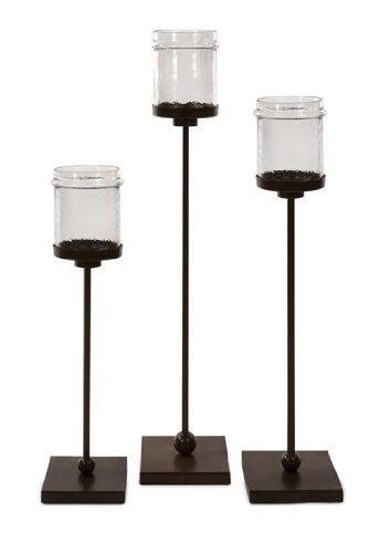 Set of 3 Modern Jar Style Floor Pillar Candle Holders on Iron Bases 41" Review