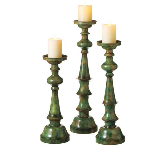 Set of 3 Traditional Weathered Forest Green Large Pillar Candle Holders Review