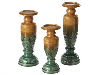 Set of 3 Carmel and Teal Glazed Decorative Floral Ceramic Candleholders Review