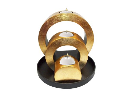 Metalic gold- set of decorative wooden lacquer ring shapped tea-light candleholders-7" Review